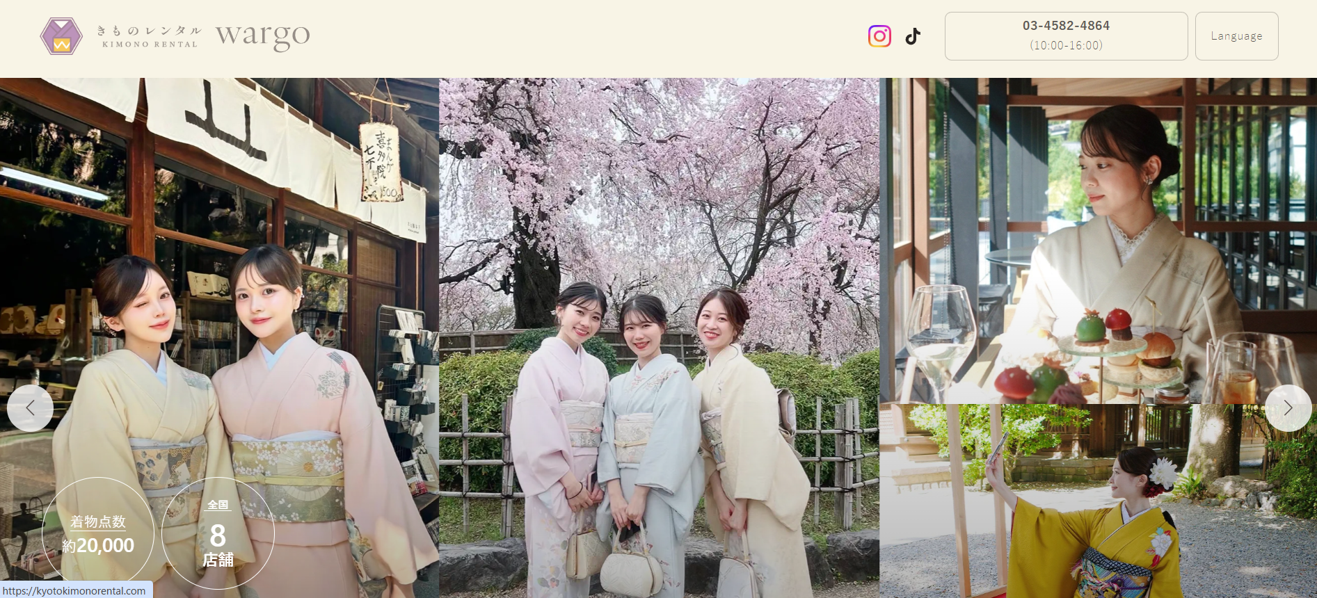 「きものレンタルwargo」は、観光やイベント、特別な日の装いとして気軽に着物を楽しめる人気のレンタルサービスです。全国主要都市に店舗を展開しており、旅行先やお出かけ先で手軽に本格的な着物体験ができる点が大きな魅力です。